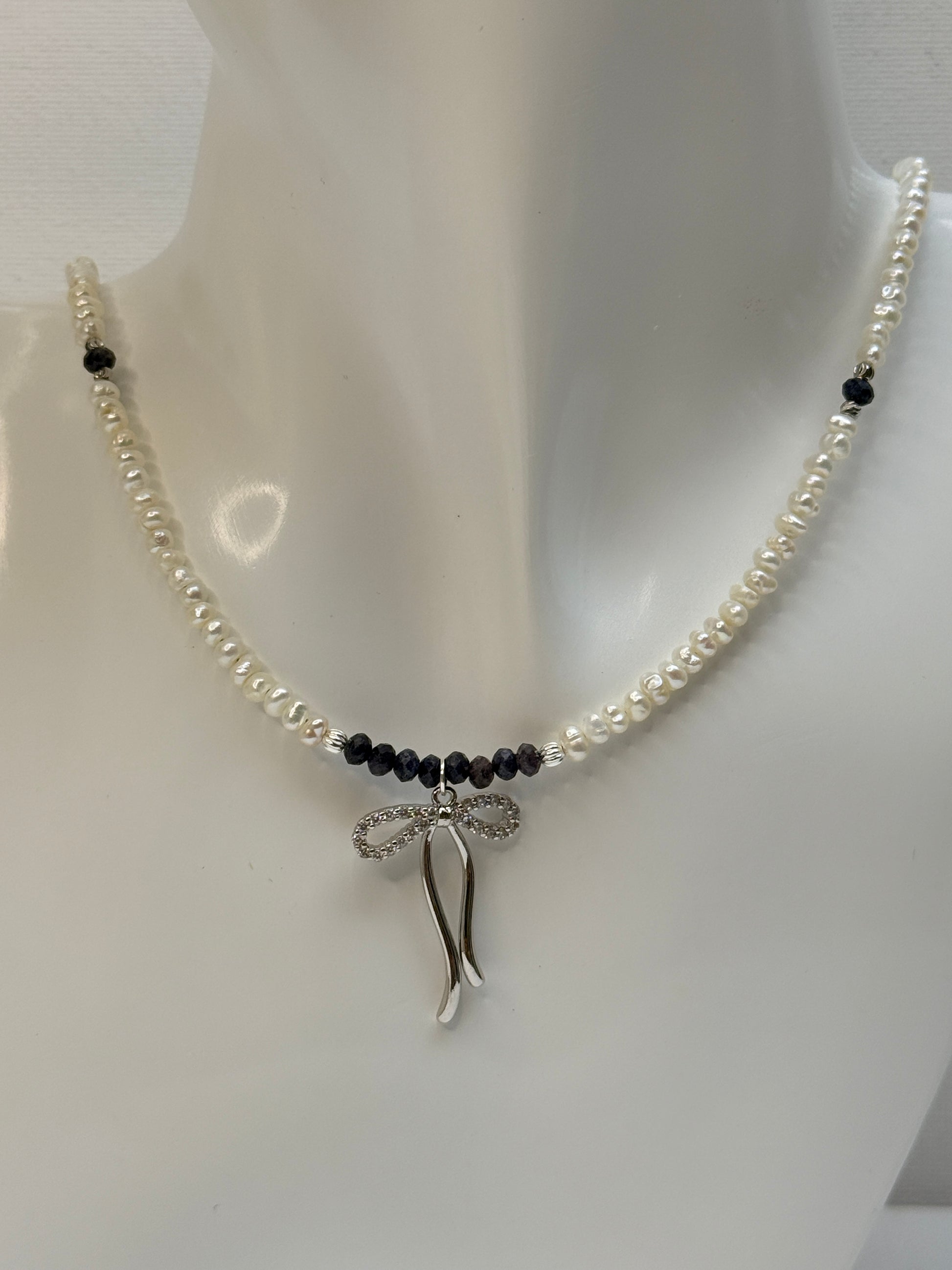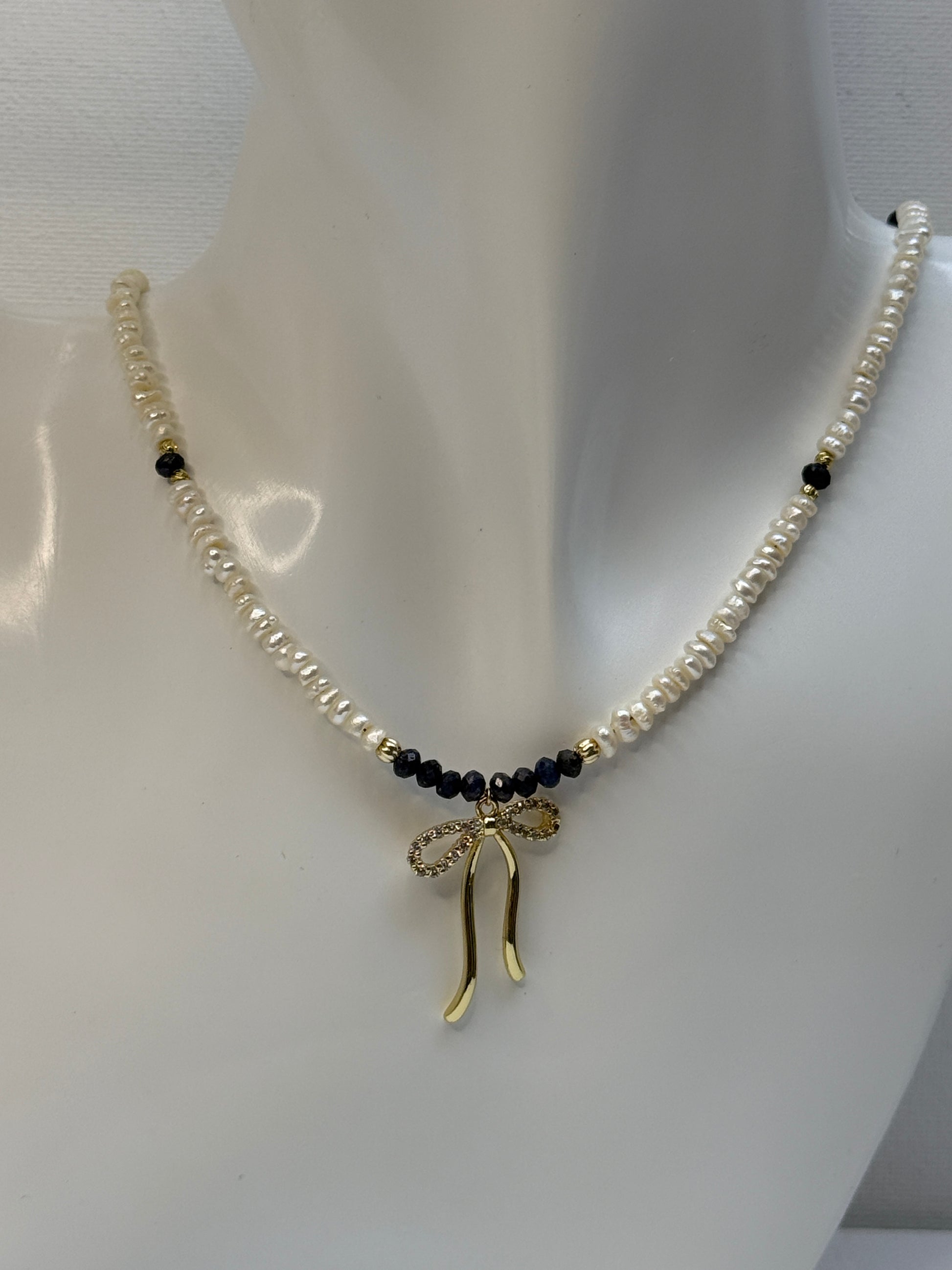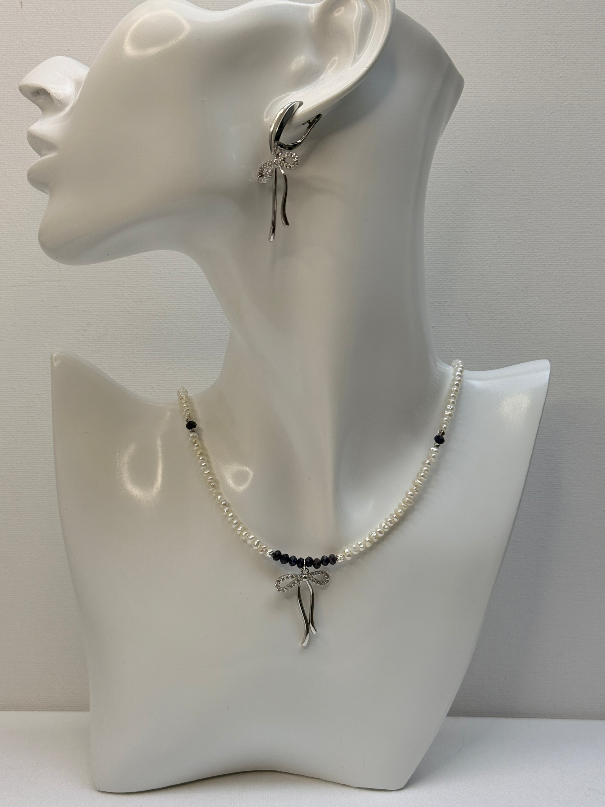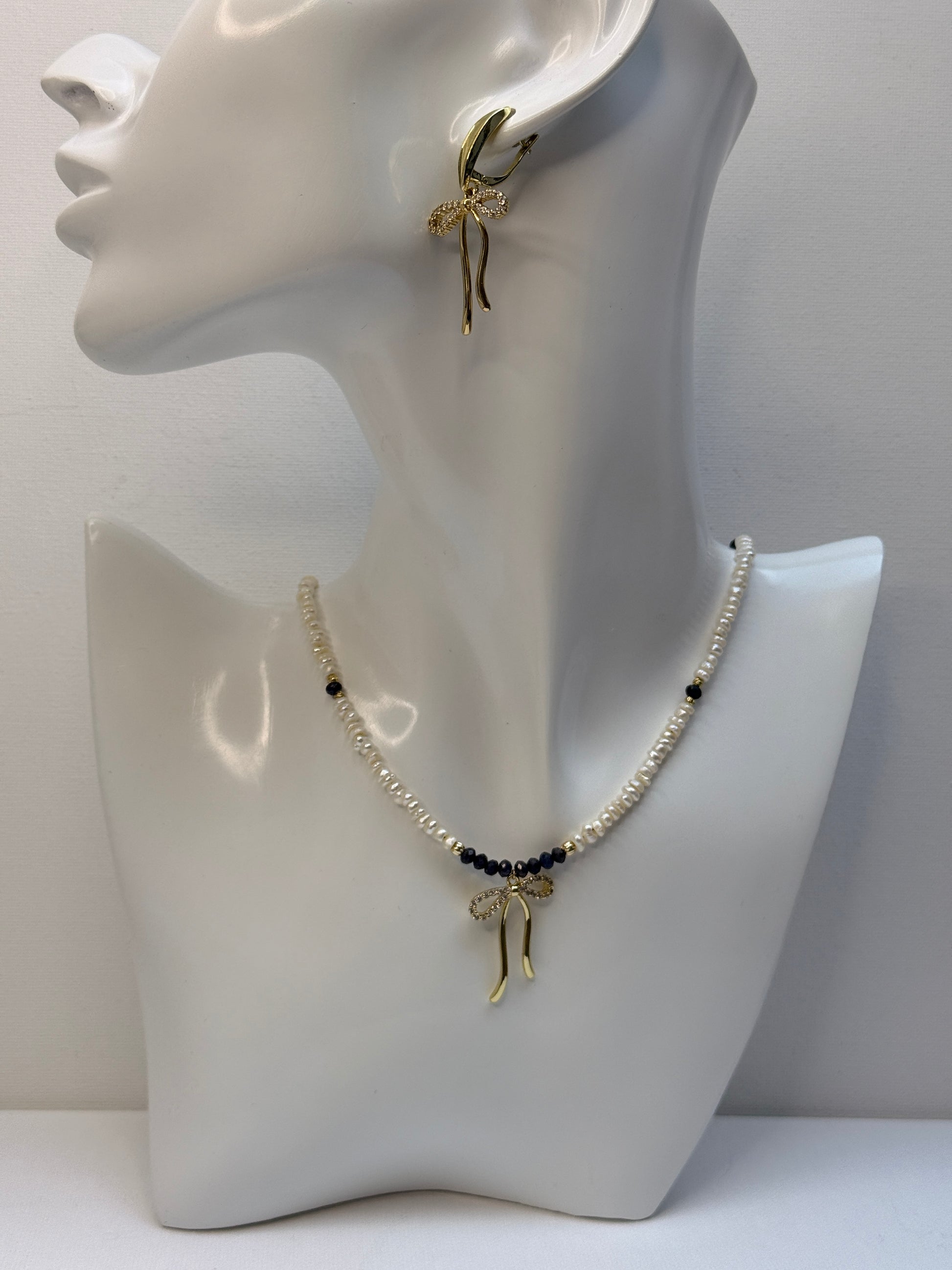 Handgemaakte zoetwaterparels setje van ketting en oorbellen met saffier en stainless steel staal materialen en 18 k vergulde goud en zilver kraaltjes,stel ik me een prachtige combinatie voor. De setje kan een elegante en tijdloze uitstraling hebben met glanzende parels en subtiele gouden en zilveren details.